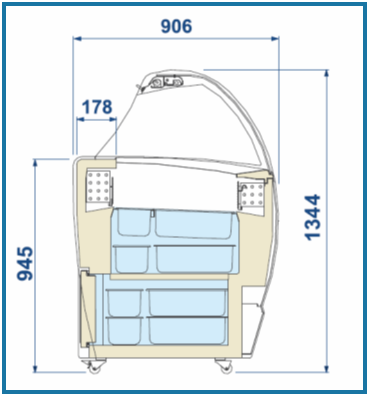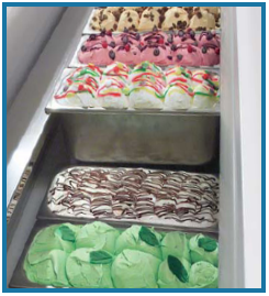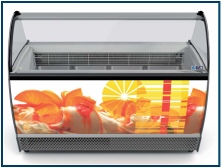 Isabella external characteristics good performances, maximising space for ice cream display . Thanks to its double evaporator Isabella can display containers of 5l. Within a T shape and can also position 4,75l. Containers in a double row. This means optimisation of the display space and uniformity of the temperature distribution inside the tank, also considering high humidity.