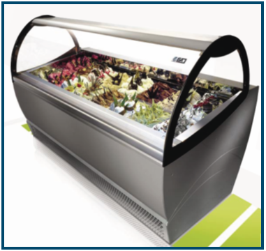 The New Millennium is an ice cream showcase with a strong identity, a perfect balance of high-tech solutions, a sophisticated, ergonomic design with high quality fittings, functional optimization of space and great versability. The powerful, balanced motors ensure excellent performance and low energy consumption under all operating conditions. ISA reliability and hight tech quality construction materials garantee maximum efficiency with minimum energy consumption, perfect preservation of the products displayed and total hygiene in all operating conditions. The inclined display deck enhances the food appeal of the ice cream on display. |