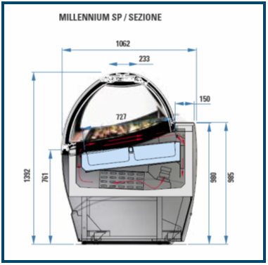 Het nieuwe Millennium is een ijsvitrine met een sterke identiteit, een perfecte balans van hoogtechnologische oplossingen, een verfijnde, ergonomisch ontwerp met hoogwaardige materialen, functionele optimalisatie van ruimte en grote veelzijdigheid. De krachtige, evenwichtige motoren zorgen voor uitstekende prestaties en laag energieverbruik onder alle bedrijfsomstandigheden. ISA betrouwbaarheid en hightech kwaliteit en constructie garanderen maximale efficiency met minimale energieverbruik, behoud van de producten en totale hygiëne in alle bedrijfsomstandigheden. De presentatie is schuin naar voren en verbetert de presentatie van het ijs. |